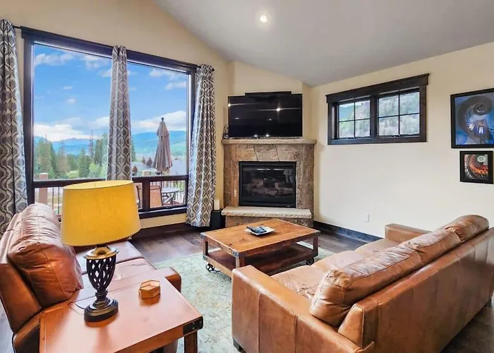 Im Stadtviertel East Keystone gelegen, bietet die 4-Zimmer- 4Bd Family Friendly Minutes From River Run Gondola eine sonnige Terrasse mit Blick auf die Berge.